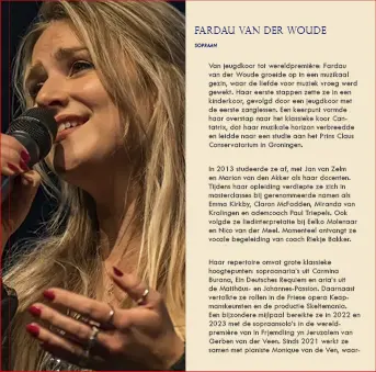 Zang: Sopraan Fardau van der Woude; Alt: Hanneke Tichelaar; Bariton: Ben Brunt